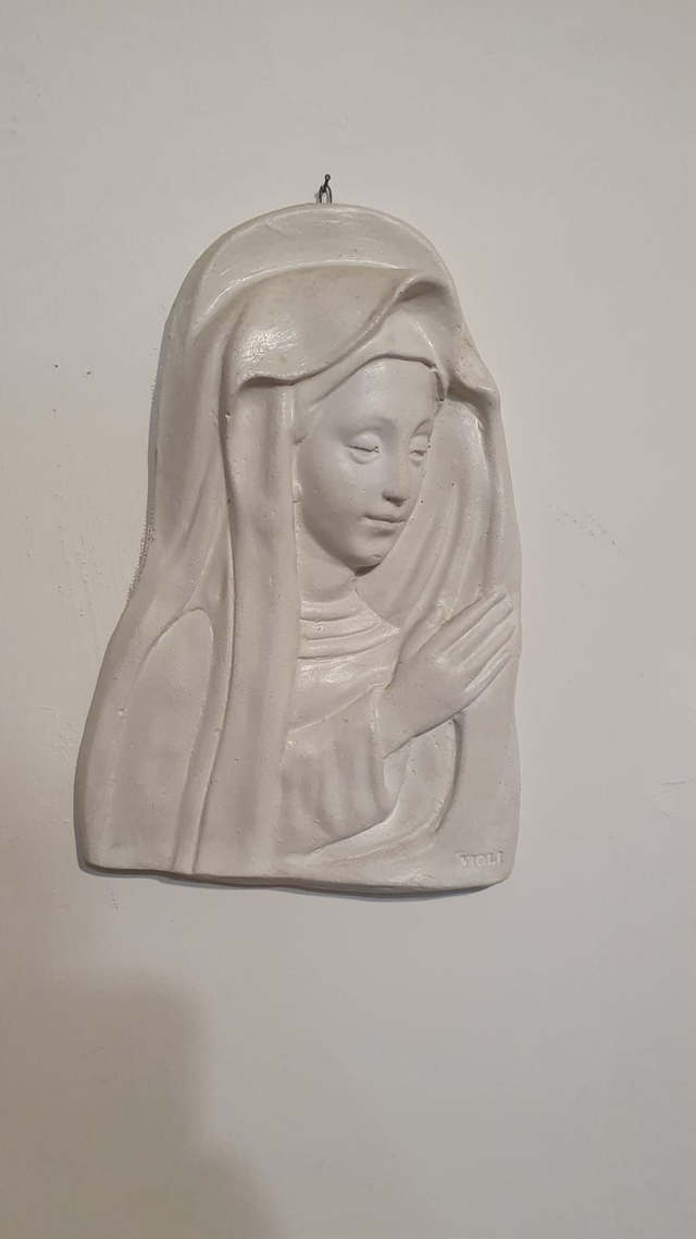 Madonnina che prega, bianca polvere di marmo e cemento bianco patinato, senza legno 18x28